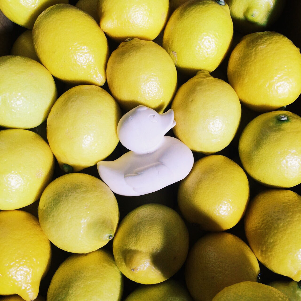 Enten monochrom weiß der Marke oli & amp; Carol , die aus 100% Naturkautschuk -Latex besteht, kann als Badspielzeug, Zähnespielzeug oder als dekoratives Objekt verwendet werden.