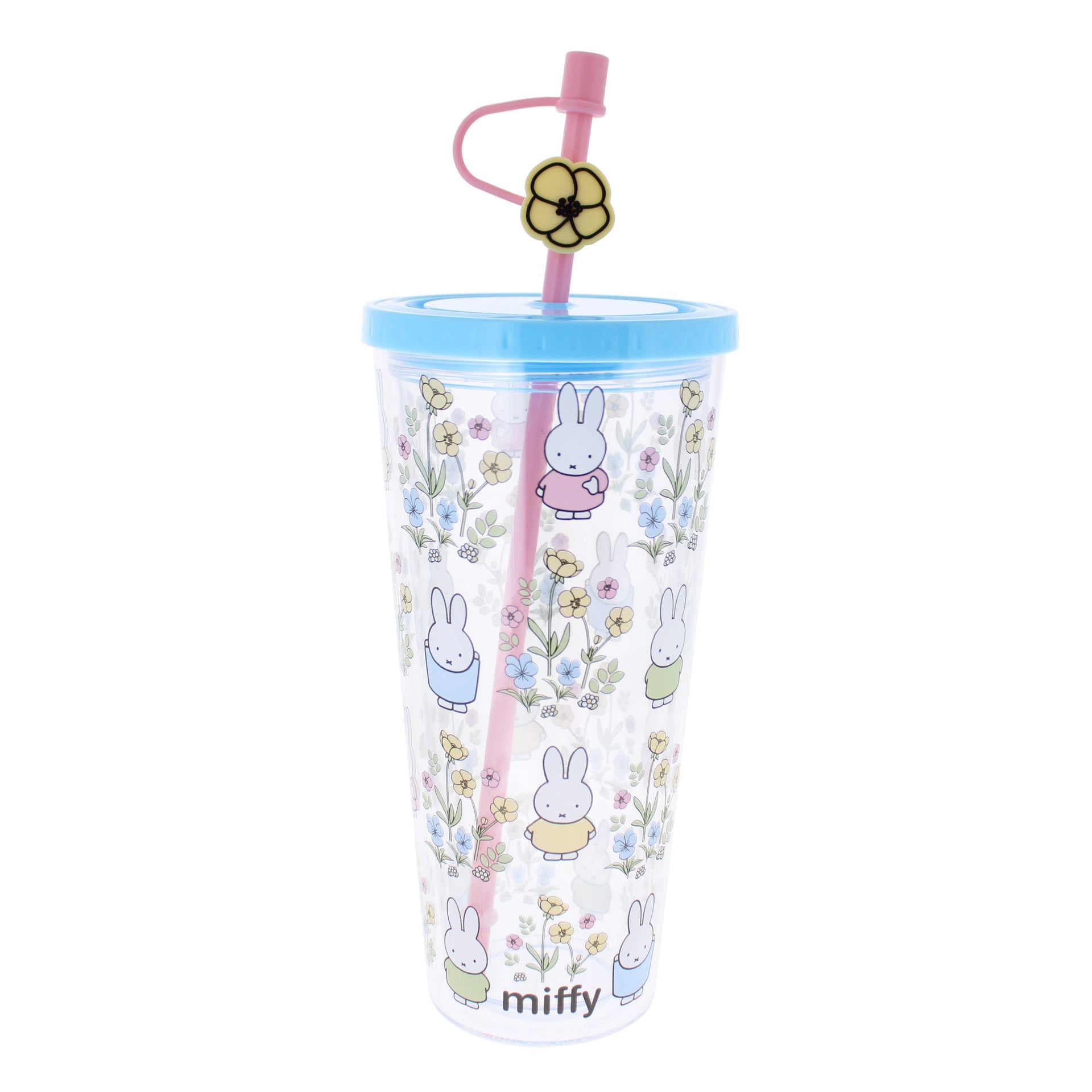 Mit diesem niedlichen Miffy-Becher und -Strohhalm wird Trinken noch einfacher und macht noch mehr Spaß. Er ist die perfekte Ergänzung für deine täglichen Begleiter und ideal, um unterwegs oder gemütlich zu Hause ausreichend Flüssigkeit zu sich zu nehmen. Das Design besticht durch einen Allover-Print mit vielen Miffys und Blumen! Der Becherboden ist transparent, der Deckel blau. Im Lieferumfang enthalten sind ein pinkfarbener Strohhalm mit Kappe und ein blumenförmiger Miffy-Clip – einfach unwiderstehlich!