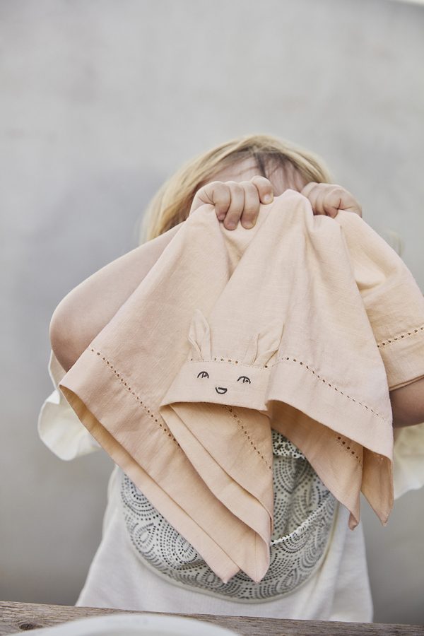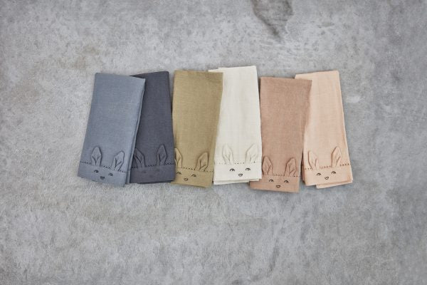 Viele 2 entzückende Baumwolltischtücher, bestickt mit einem hübschen kleinen Kaninchenkopf und seinen 2 Ohren.
