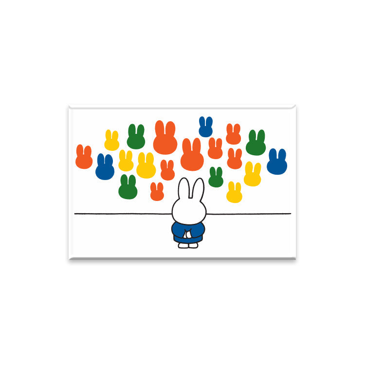 Ein Metallmagnet in den Farben von Miffy und seinen Freunden. Ideal auf einem Kühlschrank.