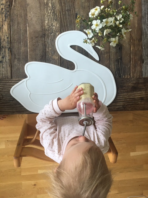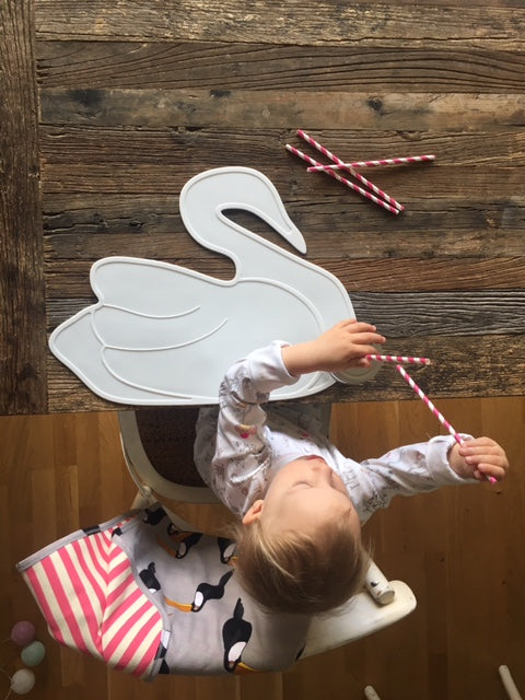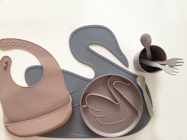 Ein Whal- oder Schwan-Silikon-Tabellensatz. Einfach im Geschirrspüler zu reinigen.