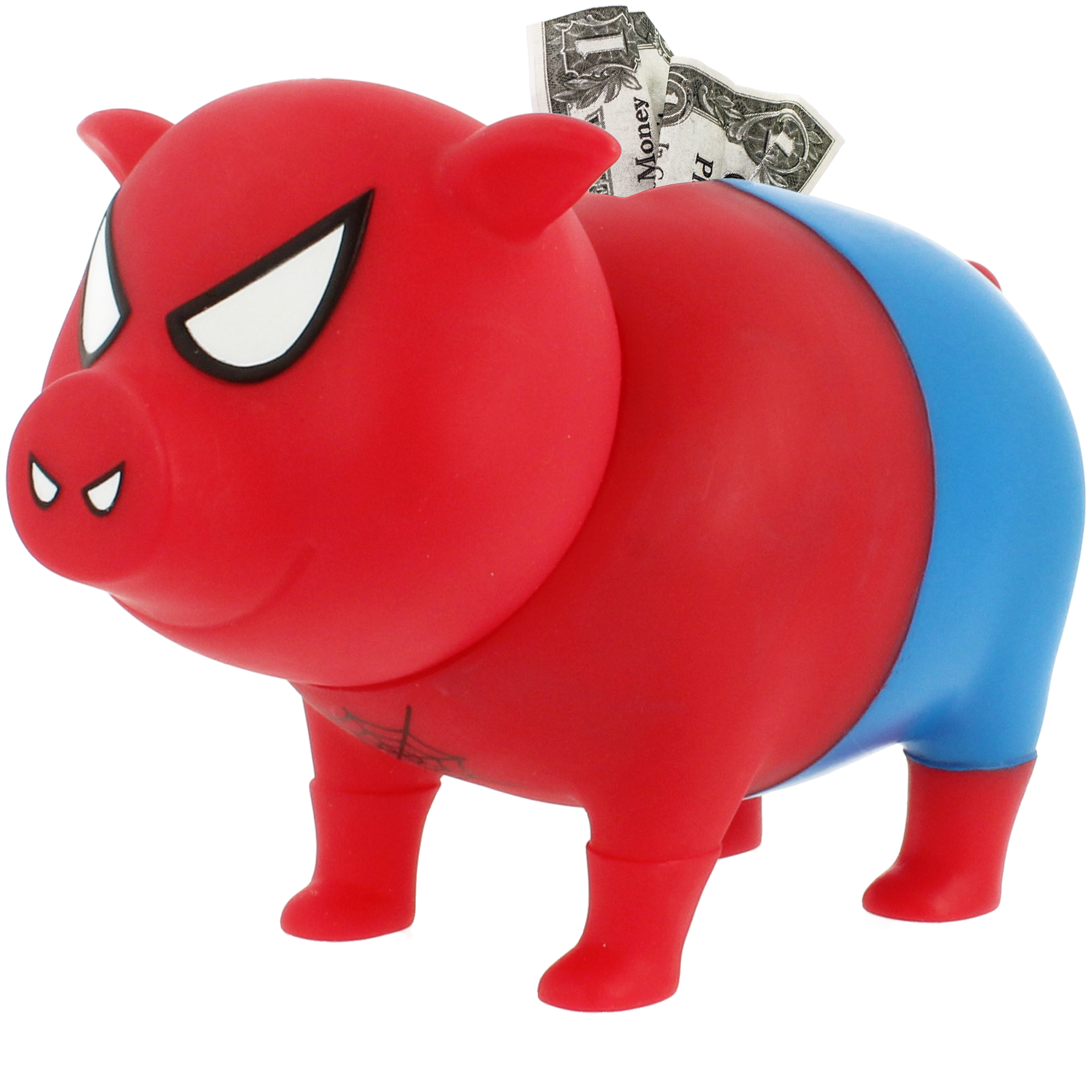 Jeder, der ein Held sein möchte, verdient eine einzigartige Belohnung für den Versuch. Dieses BIGGY Spinnenschwein wird mit seiner Spinnen-Superhelden-Kleidung und seiner Fähigkeit, als Sparschwein Geld zu sammeln, heldenhaft. Das Spinnen-Schwein ist somit der perfekte Glücksbringer für waghalsige Aktionen und kleine Helden, die gerne an der Decke herumlaufen.