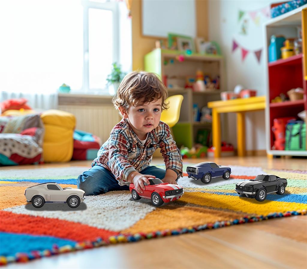 Geeignet für Kinder ab 3 Jahren, bietet dieser schwarze Ford Mustang Rennwagen ein unvergessliches erstes Fahrerlebnis. Ein Mustang als erstes Auto ist ein Wachtraum, der Eltern neidisch machen könnte! Die Größe dieses kleinen Spielzeugautos ist ideal für die einfache Handhabung durch kleine Hände und fördert die Fantasie und Rollenspiele.