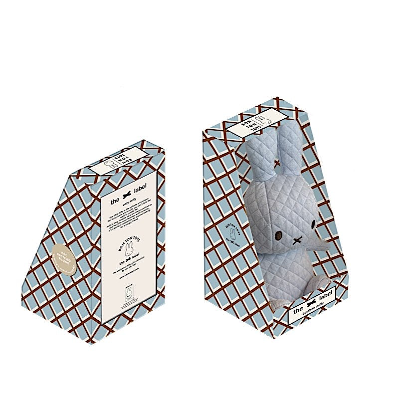 Miffy dans une boite avec un tissu matelassé dans trois couleurs neutre. Qui n’en veut pas une … ?