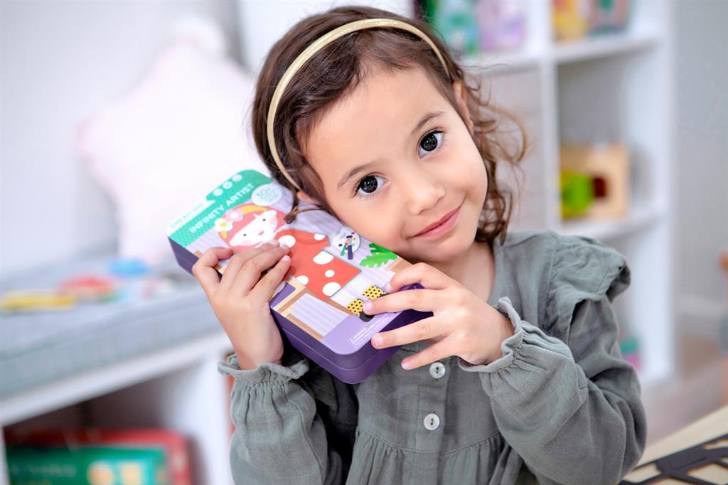 The original magnetic travel play boxes from the Australian brand "mierEdu" come in 3 themes: jobs, vehicles, and fairy tale characters. Each box contains two scenes with, on one side, a character to dress up and, on the other side, a setting with more than 30 magnetic pieces. For playing at home and on the go!