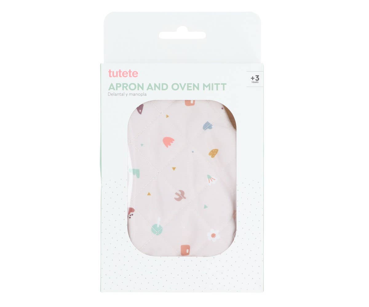 Toy apron and pot holder to offer little ones maximum comfort and protection while they enjoy their manual and culinary activities.