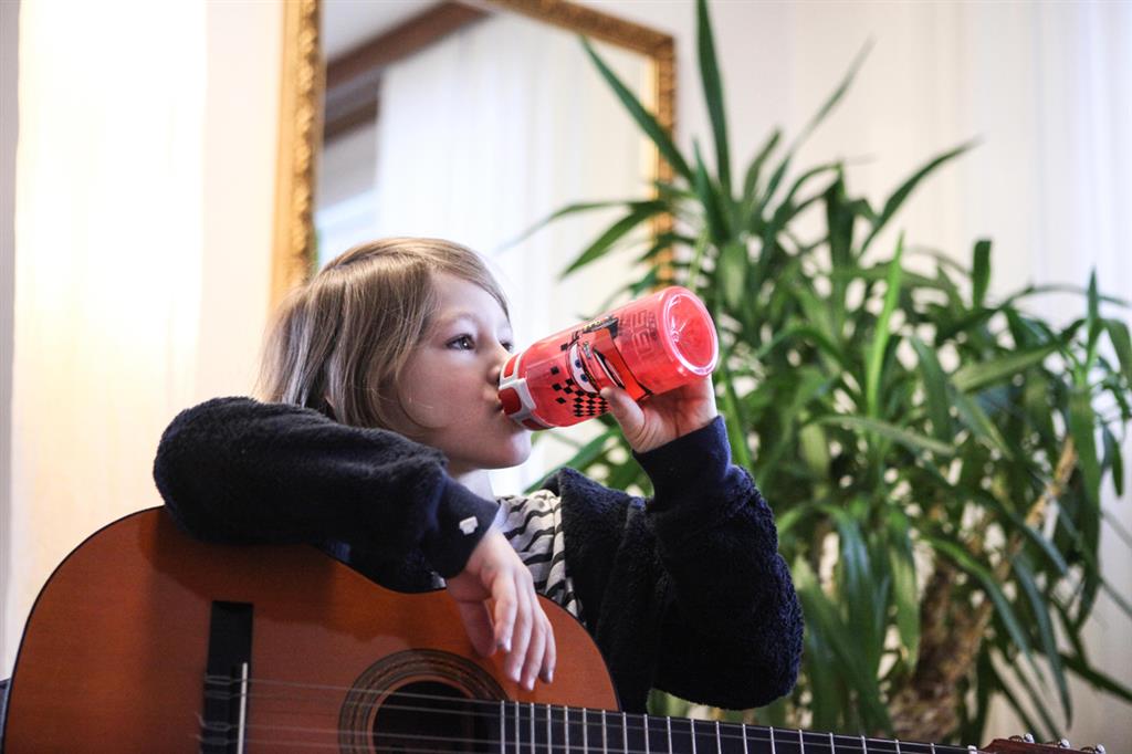 The durable and recyclable children's bottle is carbonated, prevents spills, contains no harmful substances and is easy to use with one hand.