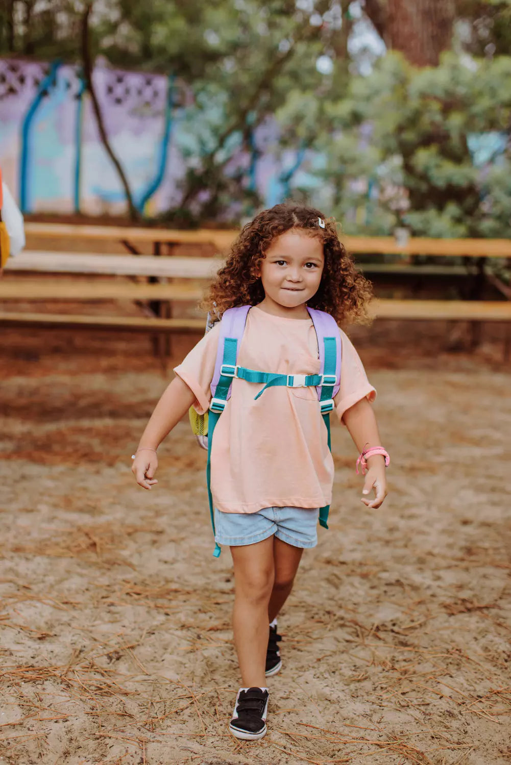 This cool school bag from Hello Hossy is made of waterproof fabric, has adjustable padded handles and an adjustable chest closure, a large inner pocket for storage, a front pocket with a zipper, and an outer pocket for water bottles. Whether for the playground or school, this is the most stylish backpack for every adventure.