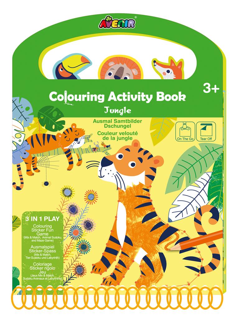 The Future with Jungle Animals activity book is a fun creative toy for children aged 3 and up. The set consists of an activity book with a handy handle and six colouring pencils.