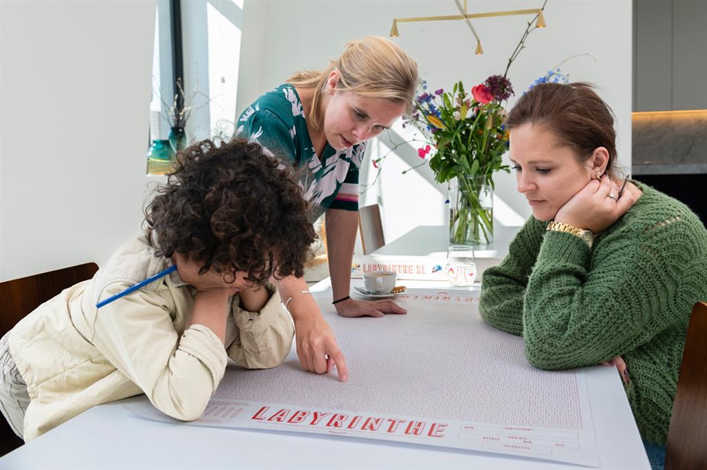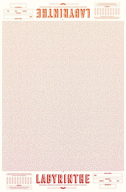The perfect gift for those who dream big! Enter the 65 x 100 cm mega-maze and find your friend who starts on the other side. Only one route is possible... so you'll eventually meet... but where? Nice search! On the back is a Maze Race, 2 identical mazes whose exit you have to find as quickly as possible... good luck!