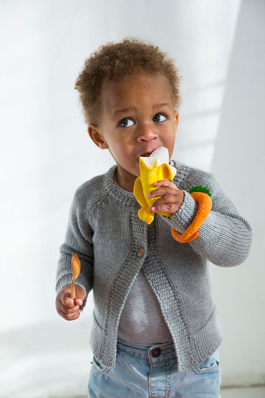 ana la banana of the brand oli & amp; Carol Made of 100% natural rubber latex, can be used as a teeth toy, bath toy or as a decorative object.