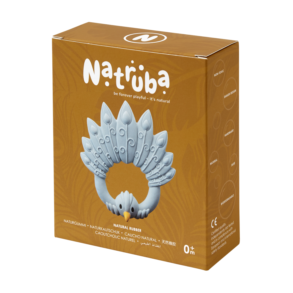 The beautiful and graceful peacock is now an amazing toy for sensory game, chewing and bath time. The peacock natruba is easy to grasp for small hands with different surfaces to encourage sensory and Flexible natural rubber easily satisfies all stages of painful gums. The time of dentition and the bath has become so beautiful!