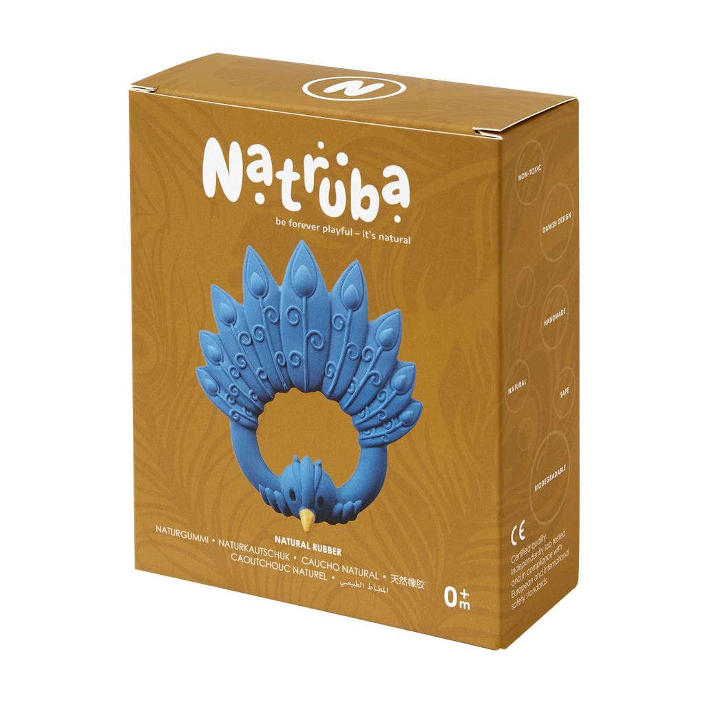 The beautiful and graceful peacock is now an amazing toy for sensory game, chewing and bath time. The peacock natruba is easy to grasp for small hands with different surfaces to encourage sensory and Flexible natural rubber easily satisfies all stages of painful gums. The time of dentition and the bath has become so beautiful!