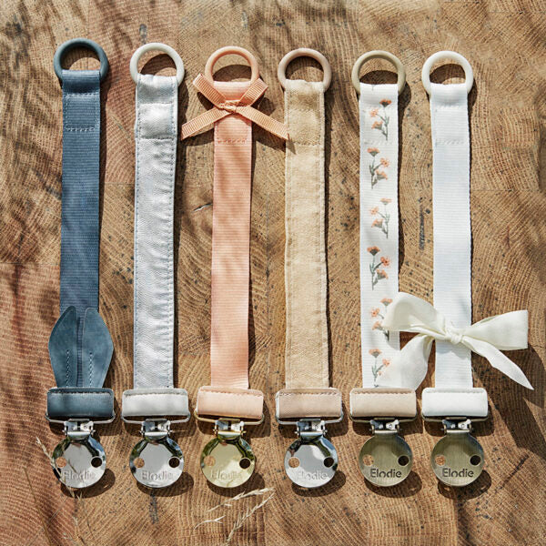 Our sucking attachment is the only elegant way to make sure that the baby's nipple remains clean. Classic or offbeat, relaxed or dressed, you choose. Flagship product, it comes back after a makeover and a change of clip. The elastic silicone ring can get attached to almost any type of tecks on the market and the wooden pliers with any type of clothing. Do not forget to choose an Elodie Details Assorted pacifier to complete the outfit!