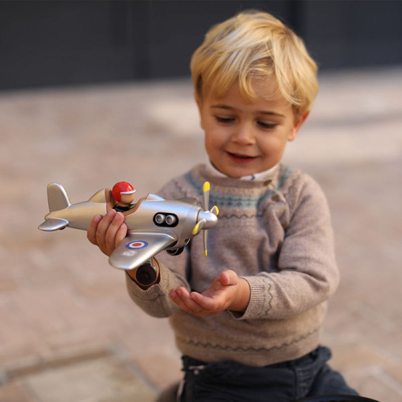 Roll, take off, fly ... These are things that your child could have fun doing with this Span> small toy plane . In addition to being very fun for a toddler, this plane plane of the span> Baghera brand is very pretty with its retro style. Inspired by the 20th century racing planes, we like its silver color, its pretty details and its small helmeted pilot. From 3 years old, your child will be able to steal his Span> Baghera aircraft Span> always higher and explore new horizons.
