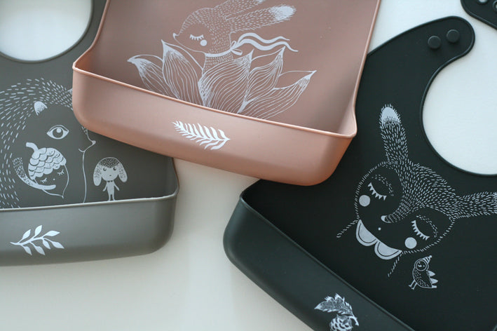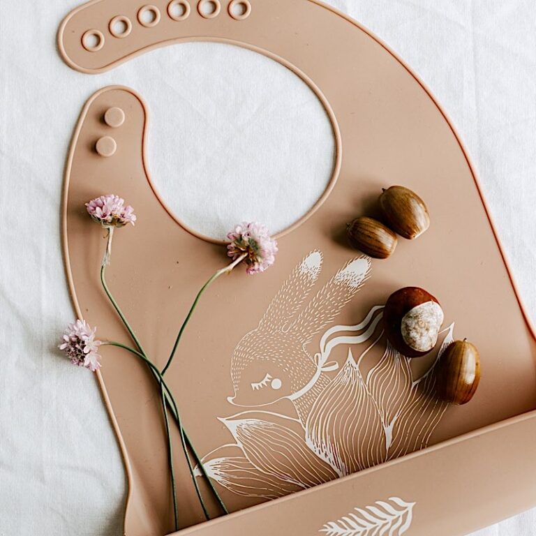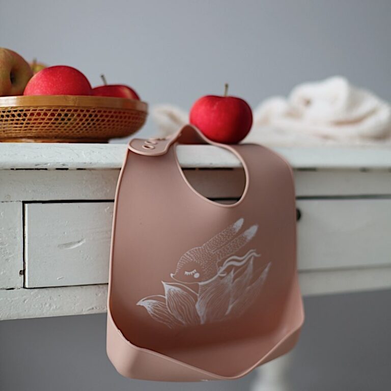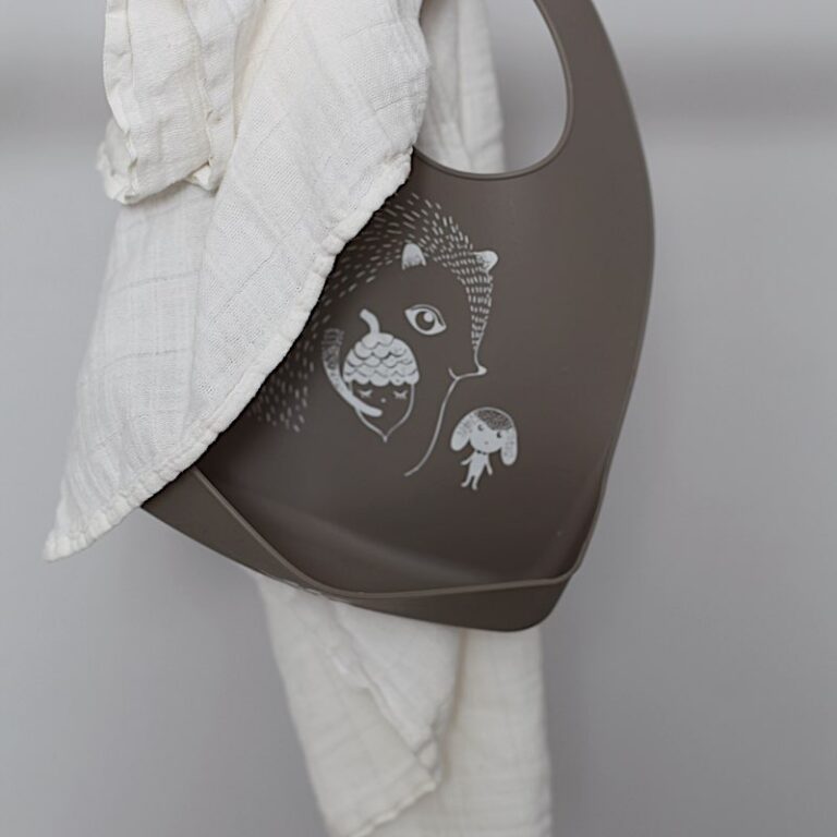 a silicone bib, which allows it to be cleaned in the dishwasher. Practical and beautiful.