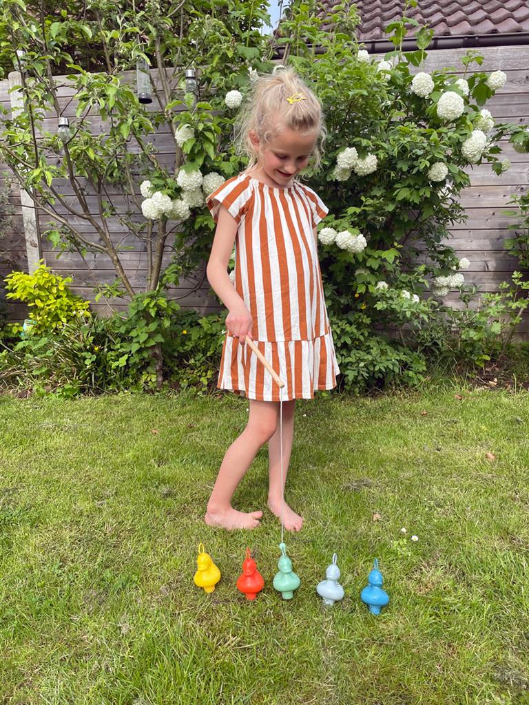 Many remember the childhood trip to Tivoli and the obligatory visit to the duck pond where the ducks sailed in circles. A place where victory was guaranteed when a duck took the bait. Whether the prize goes into the bathtub or the home's water basin is up to each individual, but the magic remains the same with Scratch's duck fishing game as it was at Tivoli. The set includes six cheerful ducks, all floating nicely in the water thanks to the counterweight at the bottom. All ducks have a loop on their head, making them easy to catch with the included fishing rods.