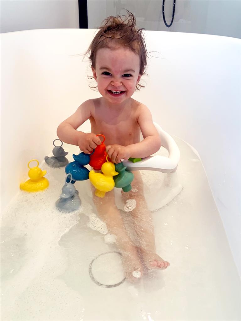 The child can either fish alone or share the experience with another, as there are two fishing rods. A fun game might be to draw numbers on the bottom of the ducks using a waterproof marker and practice counting.