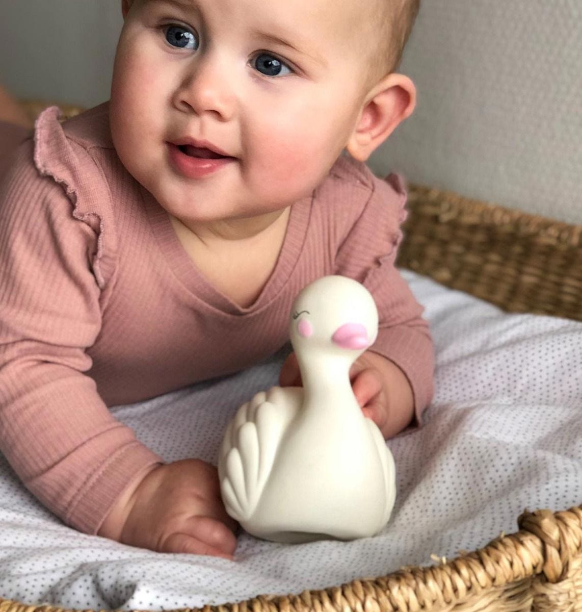 Your toddler's teeth come out? So our adorable little swan -shaped teeth toy is a must. The dentition toy is made up of 100% natural rubber from hevea, does not contain harmful substances and has a pleasant fragrance. Ideal when your toddler experiences discomfort because of dental thrust.