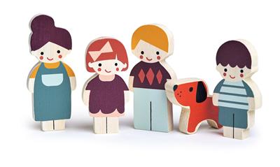 Mentari Avenue Chestnut: DOLL FAMILY with DOG 23x10x1.2cm, wooden, in box, 12m+