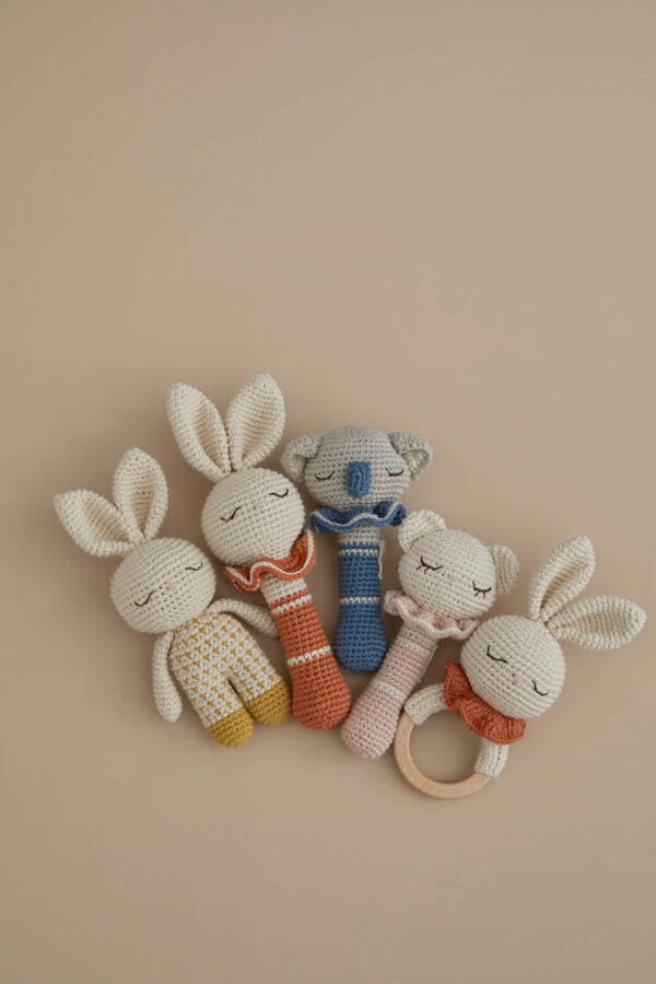 This classic rattle with its small Koala head is easy to hold and it makes noise thanks to its bell when you shake it. span>