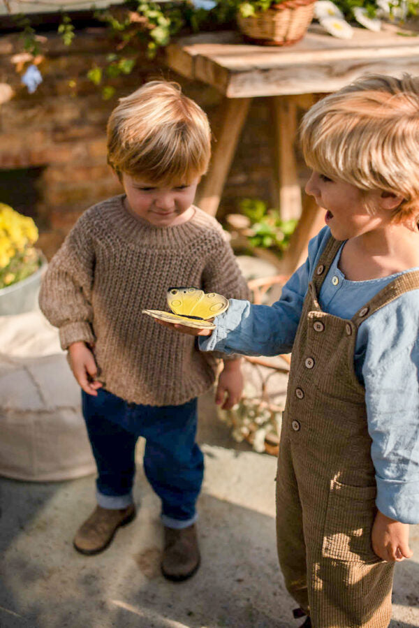 katia the butterfly : majestic with its large yellow and black wings decorated with different textures.