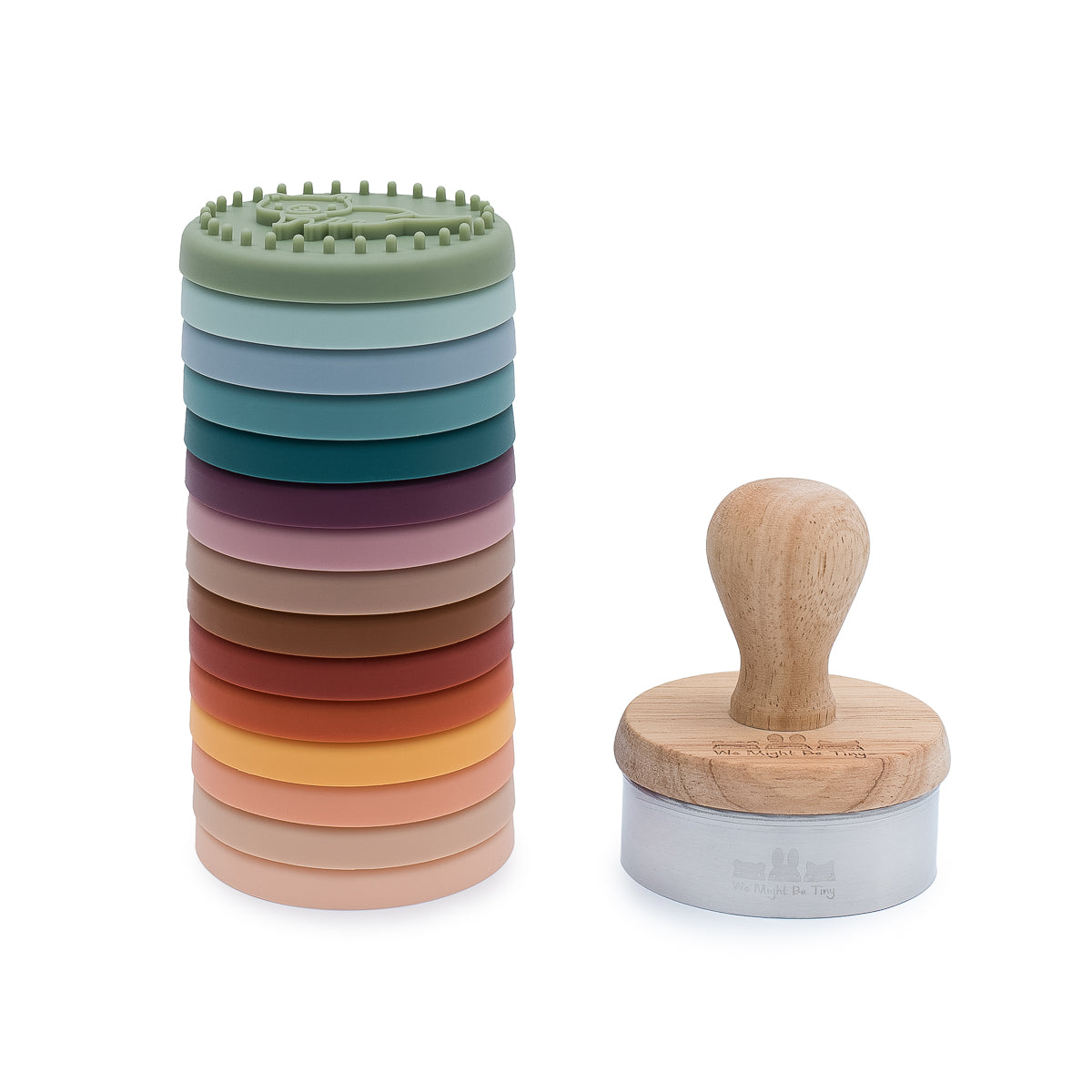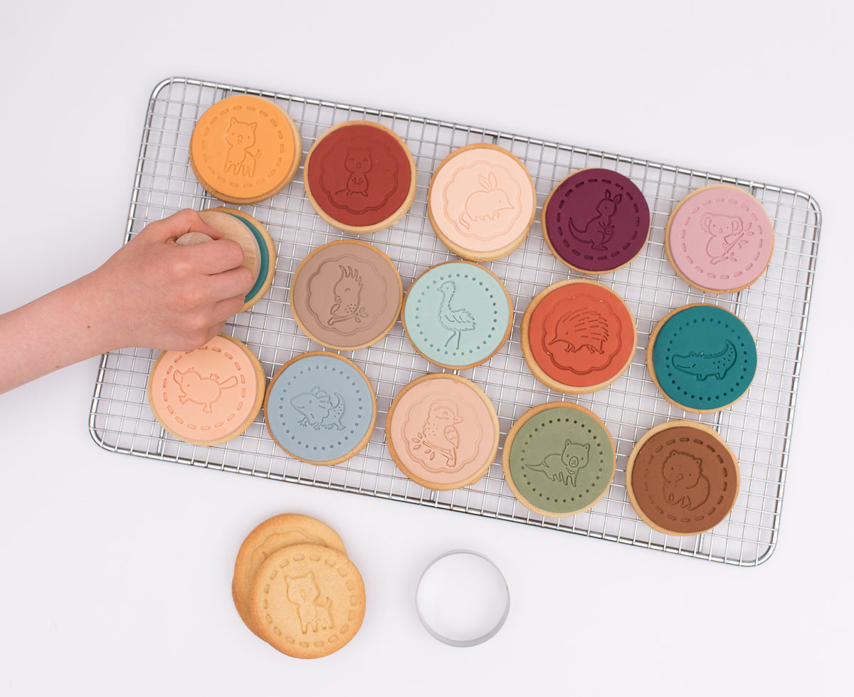 Each kit is delivered with a handle and a round stainless steel cookie.