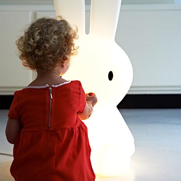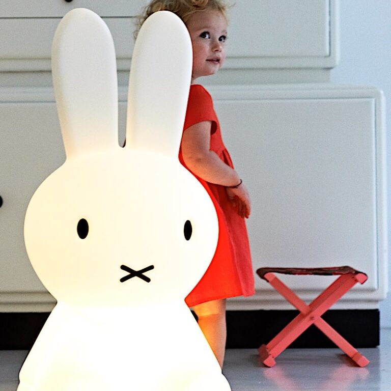 The Miffy rabbit in format to be placed on the ground. This design lamp is suitable for both a child's room and modern interiors. Supplied with tactile variator integrated into the wire. ON/Off button.