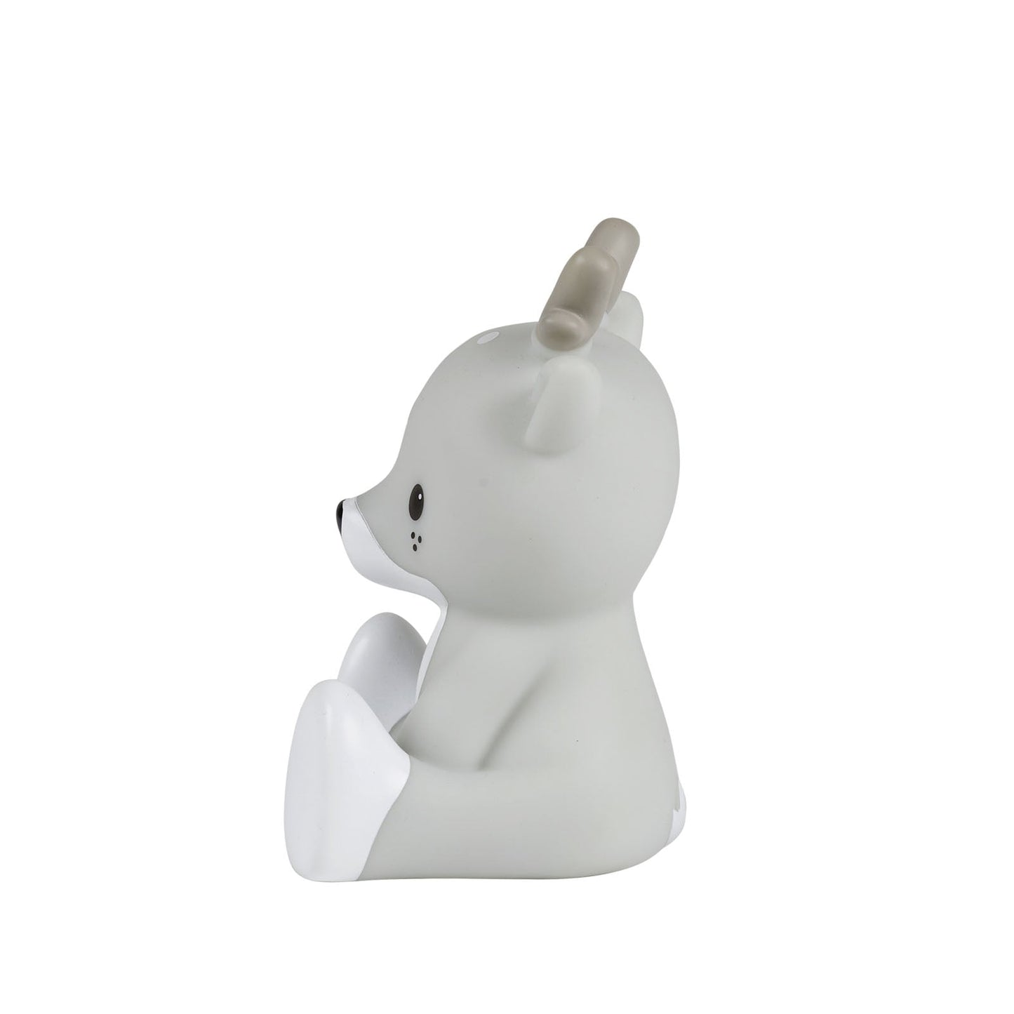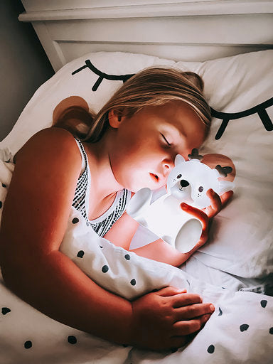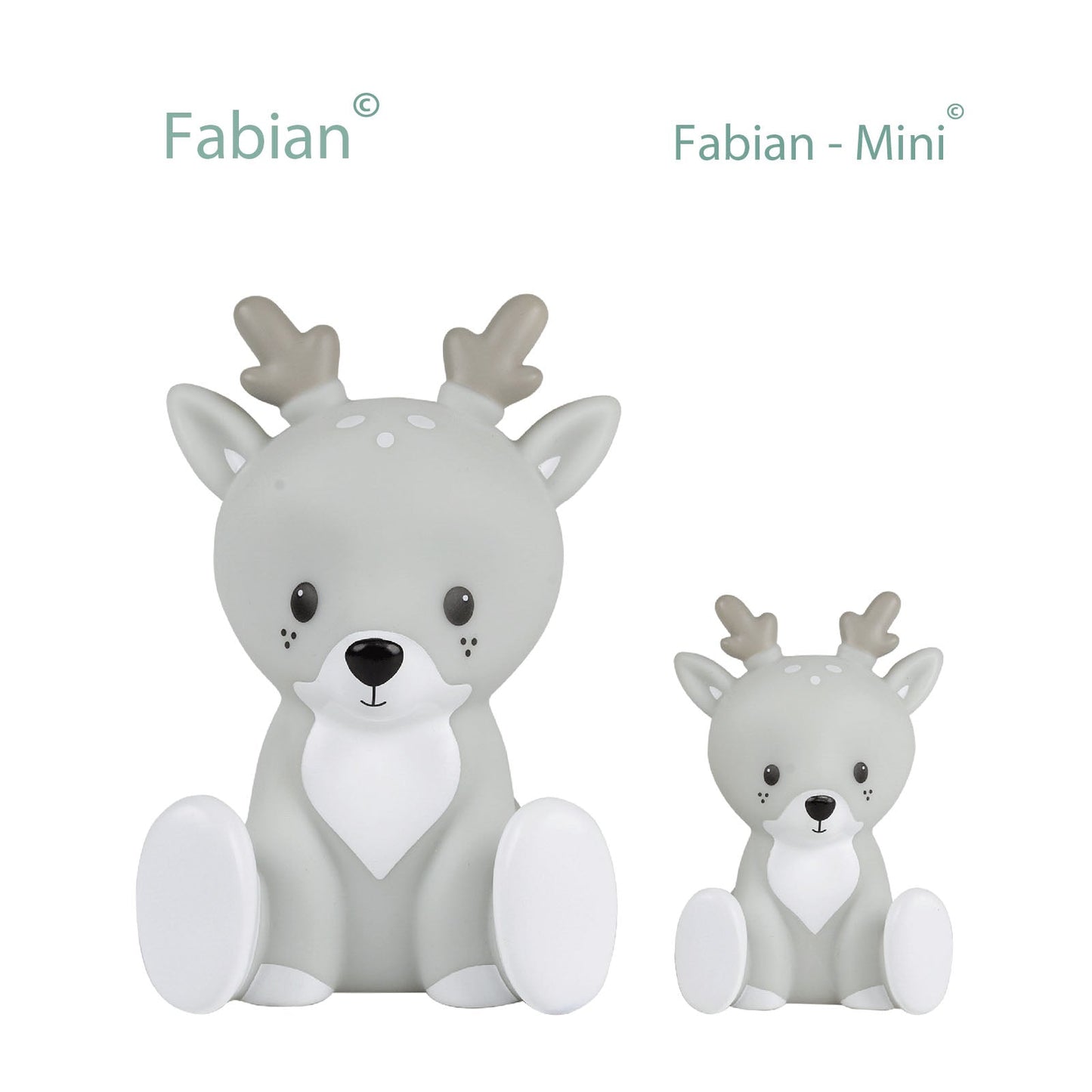 Fabian lights up for 1 minute if you touch it. A real comfort at night. It stays with you for a long time, because the battery changes.