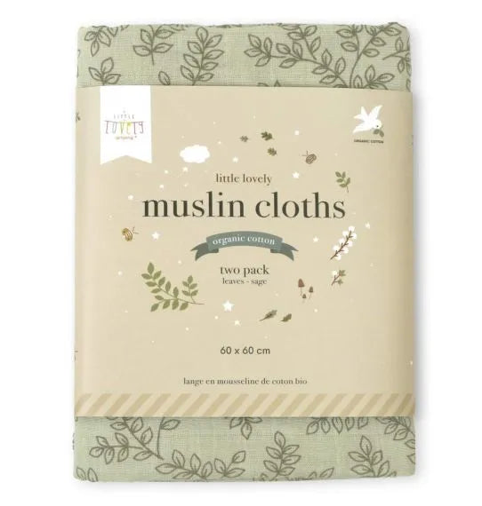 Set of two multi-purpose muslin languages. Made from 100% organic cotton, these soft rags are an essential article for each new parent. Cotton muslin is light, absorbent and breathable, which makes it ideal to use during power, cleaning and bath. These clothes also have the ideal size for travel.