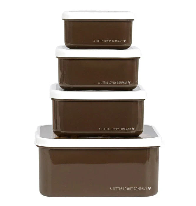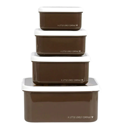 This brown lunch and snack set with bear is ideal for taking to school or on the go. It consists of four boxes of different sizes, easy to stack and store.