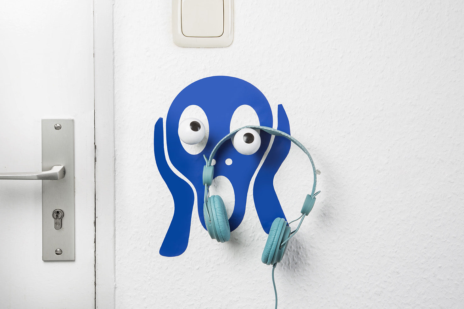 L'assistant de garde-robe Scream se compose de deux yeux en bois servant de crochets, de vis, de chevilles et d'un sticker mural amovible. Vos vestes seront émerveillées !