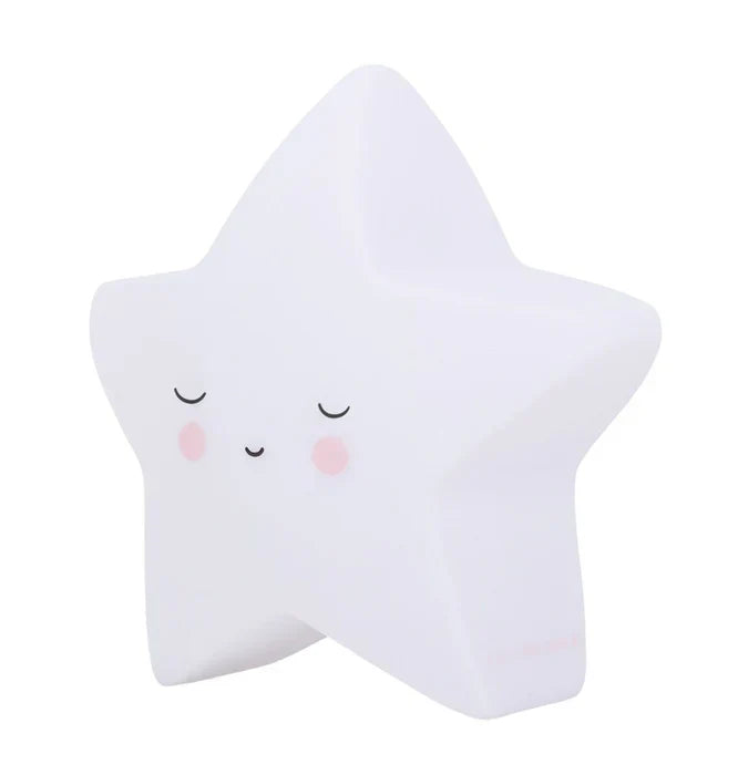 This small white star-shaped bedside lamp casts a soft glow and creates a sense of security in the dark, allowing children to fall asleep peacefully. Cordless, it doesn't get hot and is easy to carry.