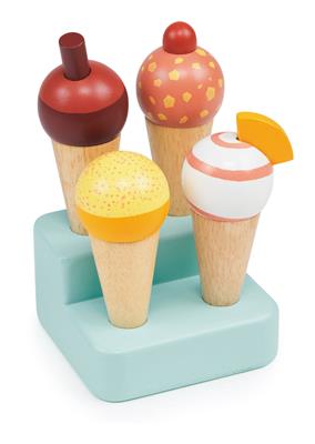 Mentari Boutique: TRAY WITH 4 ICE CREAM CONES 8x8x12.5cm, wooden, in box, 2+