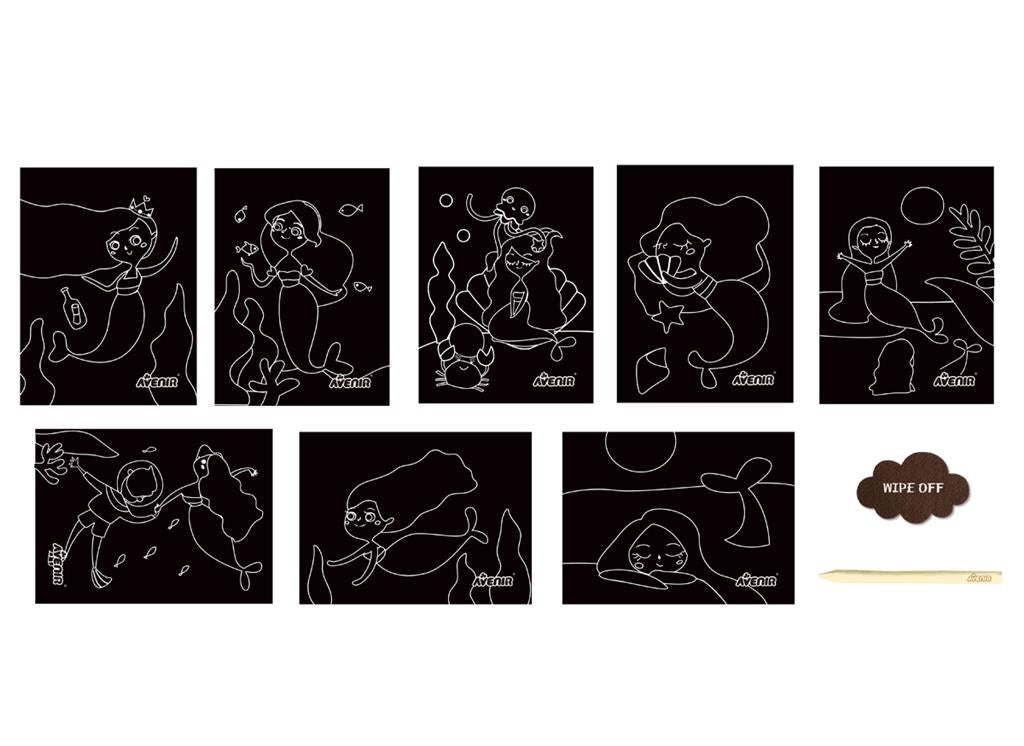 With its 8 scratch boards, this pocket Junior Scratch "My Little Mermaid" from home Coming , children will be able to create beautiful decorative paintings for hours. Thanks to the included stylus, the areas can be scratched completely, partially or by creating all the possible patterns according to the children's desires.