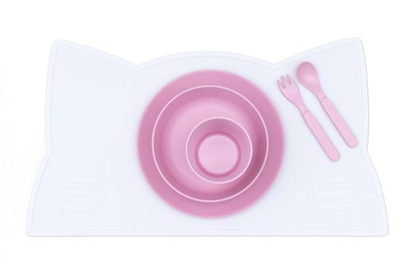 This adorable cat -shaped table set (with its small mustaches) is perfect for children who eat alone. Made from non-toxic superior food silicone, these table sets are non-slip and washable in the dishwasher, ideal for protecting the table.
