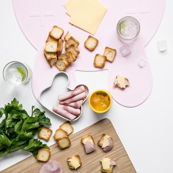 This adorable rabbit -shaped table set (with eyes "") is perfect for children who eat alone. Made from non-toxic superior food silicone, these table sets are non-slip and washable in the dishwasher, ideal for protecting the table.