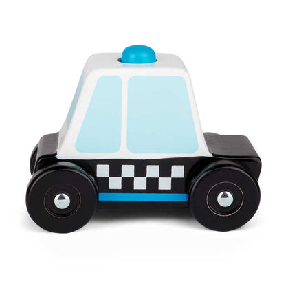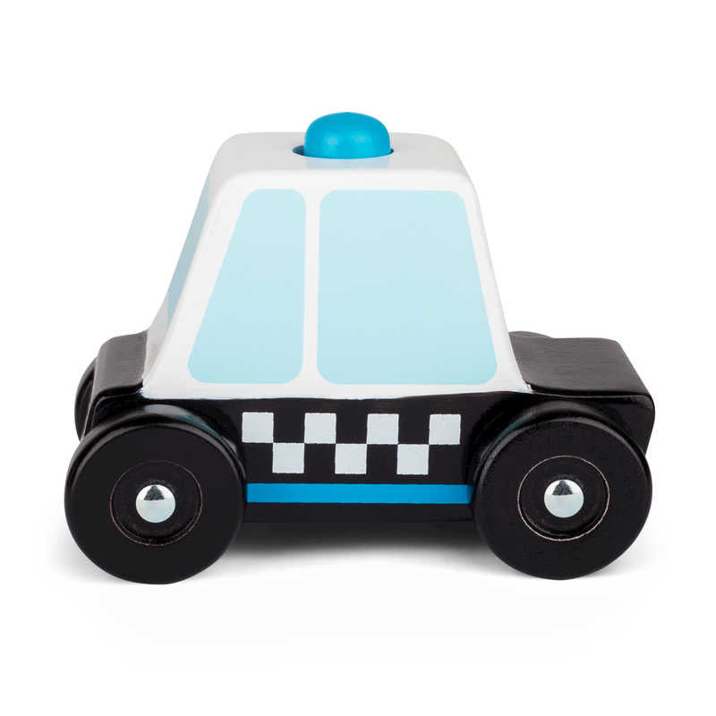 Wooden police car that emits authentic sounds. This emergency vehicle is beautifully detailed, with a wonderfully simplistic design that recalls traditional wooden toys. Press the lighting mounted on the roof to activate the internal module which emits a mermaid sound.