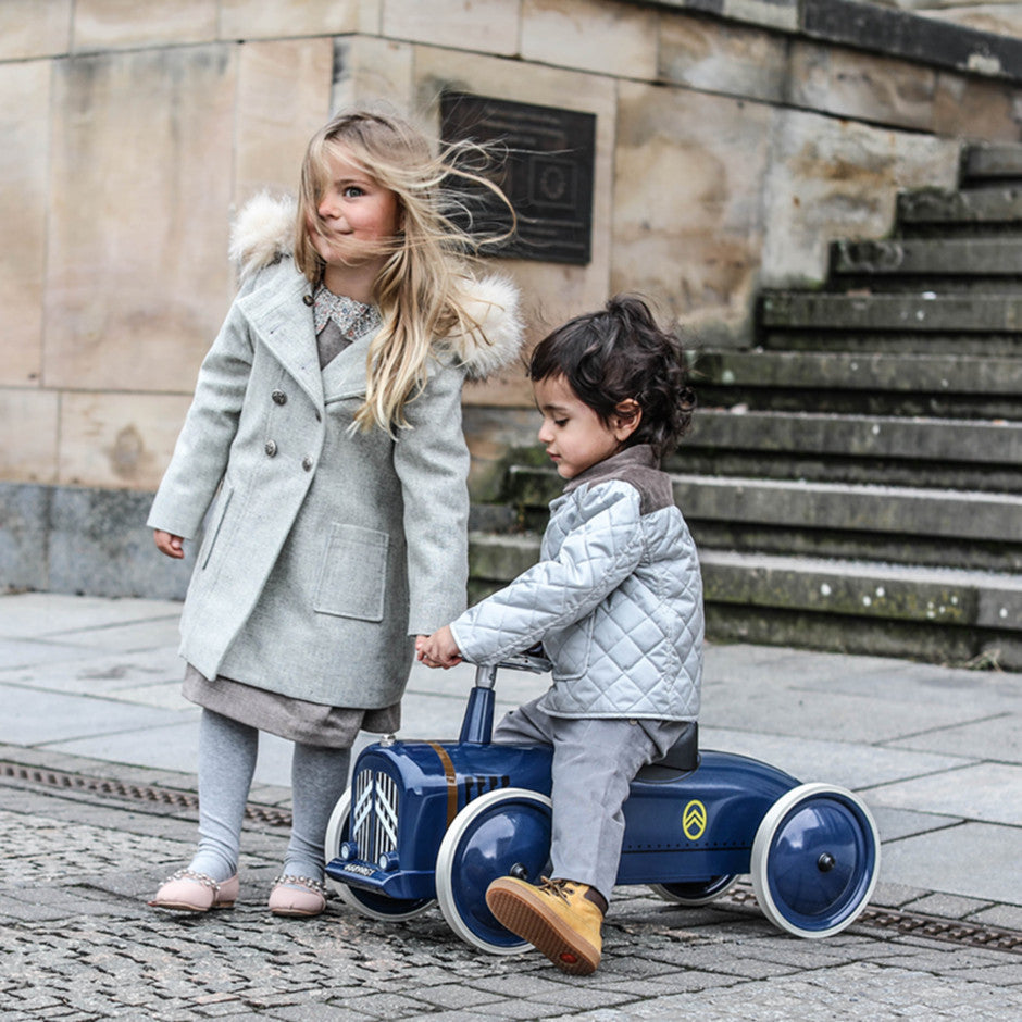 Baby metal carrier Speedster Petite Rosalie Citroën Baghera from a year. This Vintage Retro Blue Trotteur is equipped with a real functional direction. Our collaboration with Citroën !