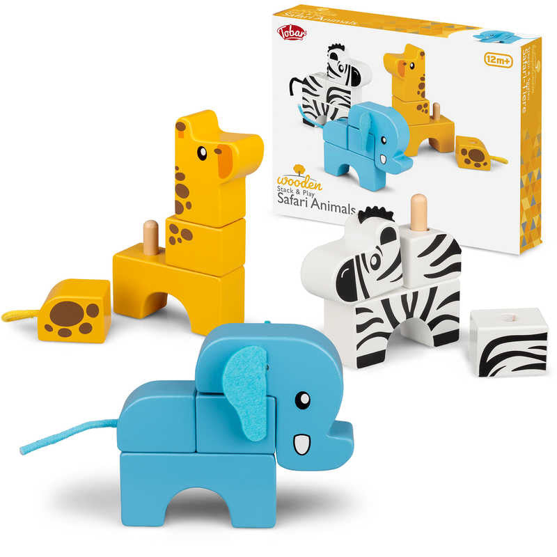 Stack and Play Safari Animals includes all blocks to build three wild animals.