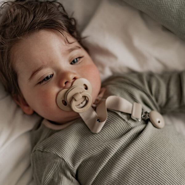 Before any first use, sterilize the pacifier for 5 minutes in previously boiled water. Let cool and press the pacifier to evacuate the water remaining inside. Wash the pacifier before each use.