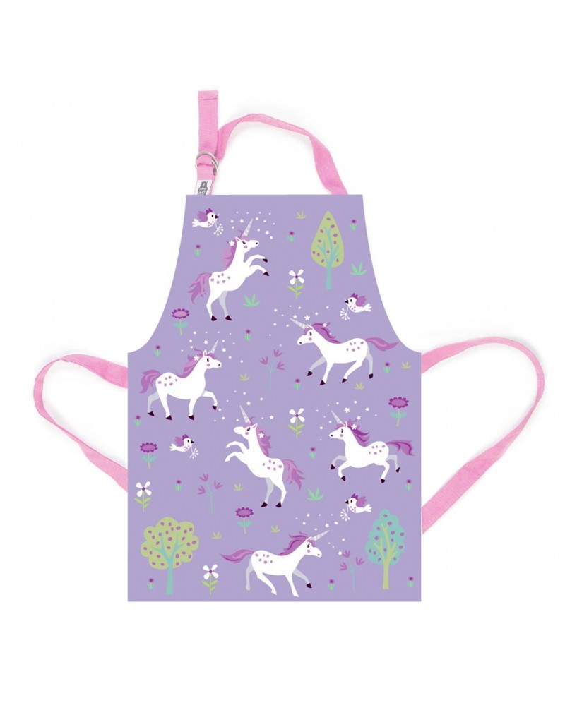 A charming and very practical apron with an illustration of dancing unicorns. Essential in the kitchen, for cooking together and for creating works of art. Thanks to the adjustable clasp at the neck and the tie at the waist, the apron easily adapts to the child's figure. An additional protective coating makes it easy to remove any dirt!